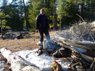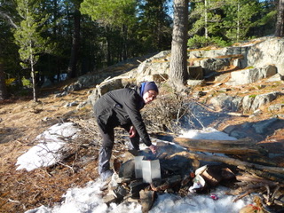 Next I started thinking about other gear - the tent that I've generally used winter camping is an ultralight 3-season tent that has seen better days. As I am planning to do solo trips and won't have another body for heat, I want something warmer, so I am getting a heavier 4-season tent. Weight matters, even when pulling a pulk, versus carrying a pack on your back. However, most of my other gear is ultralight, or lightweight (like my -30C sleeping bag with windstopper material). I have a great 4-season sleeping pad that reflects heat back up, which is nice as I'm a cold sleeper. I also have a lightweight axe which is handy for both splitting wood and getting water. An emergency communicator device also makes the list; it's good to have even when going on trips with other people, but when solo in more dangerous conditions (as -30C or colder can be), it's essential.